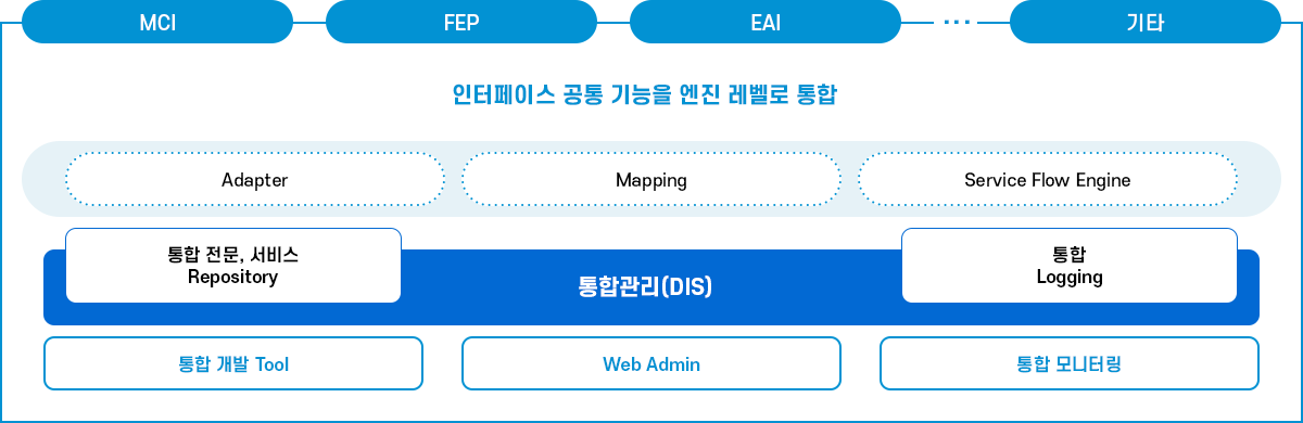 온프레미스 / 클라우드 환경에서 다양한 인터페이스 기능(MCI, FEP, EAI 등)을 제공합니다.