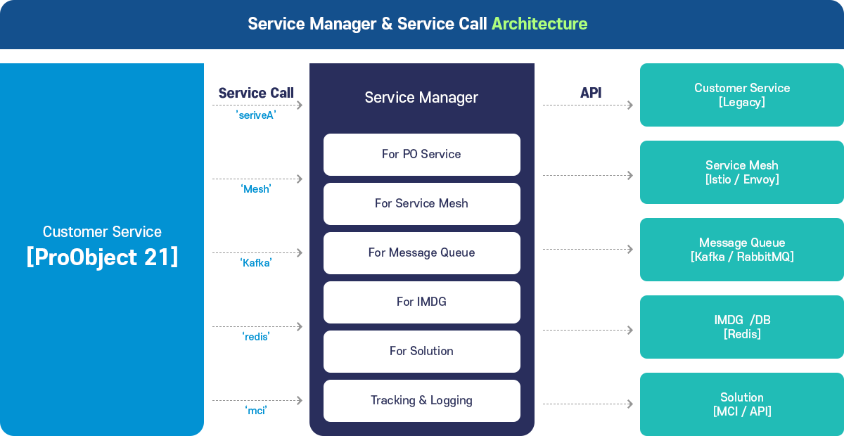 특히, Service Manager 및 통합 Service Call API를 통해 Outer/ Inner 컴포넌트 간 복잡한 연계를 손쉽게 처리할 수 있습니다.