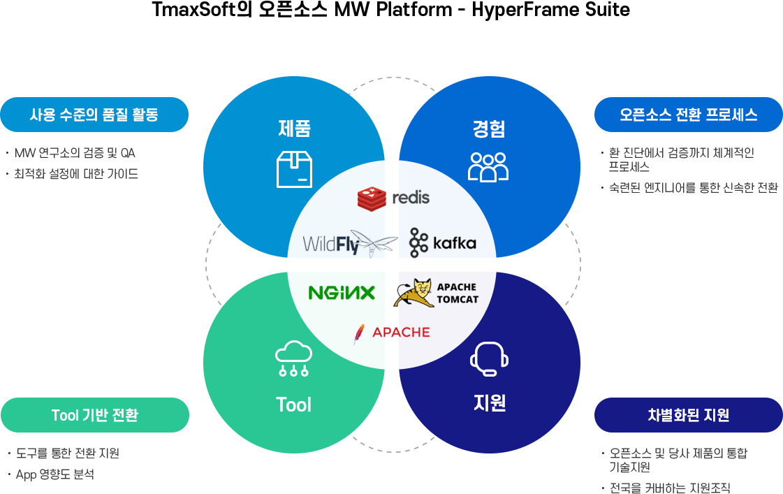 - 미들웨어 전문 연구소에서 검증한 오픈소스 솔루션 제공